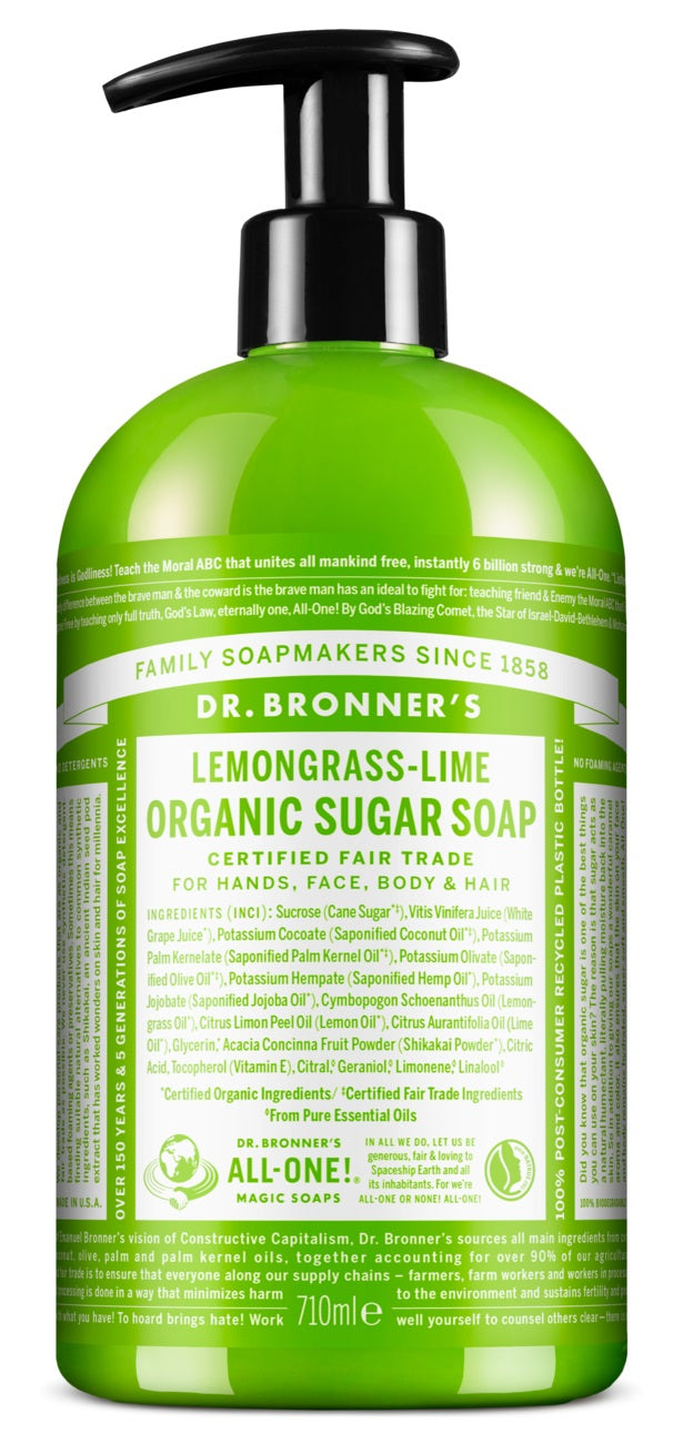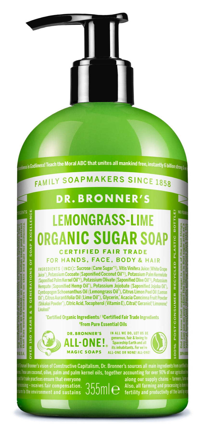 Dr. Bronner's Citroen Limoen Zeeppomp is lief voor lichaam en planeet! Fair trade & biologische suiker geeft onze biologische pompzeep een rijke caramelkleur en zoete geur. De suiker is gecombineerd met druivensap om je huid gevoed, gehydrateerd en soepel te houden. Biologische kokos-olijven oliën zorgen voor een romig castille schuim & onze zeepmaak traditie! Perfect voor wie houdt van natuurlijke, veelzijdige reiniging en bewust kiest voor fair trade en duurzame ingrediënten.