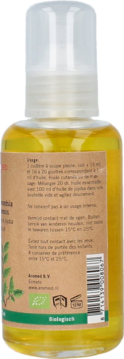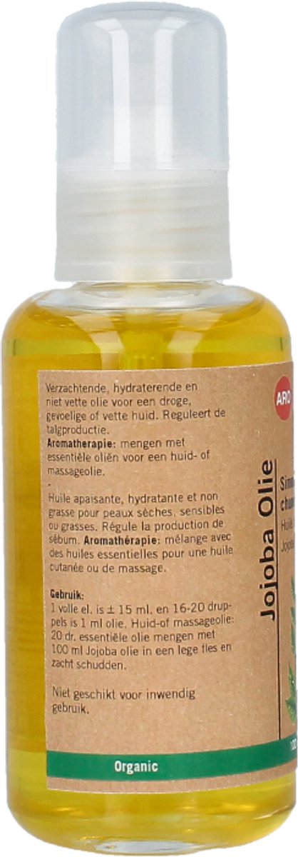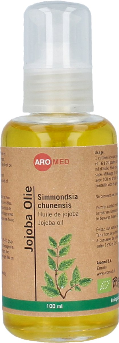 Aromed Olie Jojoba is een lichte, verzorgende olie gewonnen uit de zaden van de jojobastruik (Simmondsia chinensis). De olie bestaat voor ongeveer 50% uit een vloeibare was, rijk aan onverzadigde vetzuren. Jojoba oxideert niet, wordt niet ranzig en blijft daardoor lang goed. De olie voelt niet vet aan, assimileert uitstekend met de huid en hydrateert de bovenste huidlagen. Jojoba olie verstevigt de huid, reguleert de vochtbalans en vertraagt de afgifte van talg, waardoor het bijzonder geschikt is voor de verzorging van een vette huid. Dankzij de verzachtende werking is deze olie ook zeer geschikt voor de droge en gevoelige huid. Daarnaast helpt jojoba olie bij jeugdpuistjes, huidschilfers, littekens, geïrriteerde huid, beschadigd haar en roos, en heeft het een natuurlijke zonnebrandfactor 4. Ook perfect als basis voor make-up of je eigen parfum.