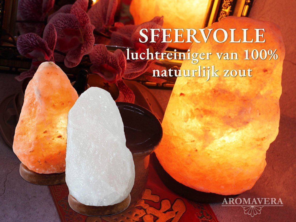 Breng sfeer en zuiverheid in huis met een echte Himalaya zoutlamp van AromaVera. Deze lampen worden vervaardigd uit puur roze Himalayazout, afkomstig uit de zoutgrotten in Pakistan.