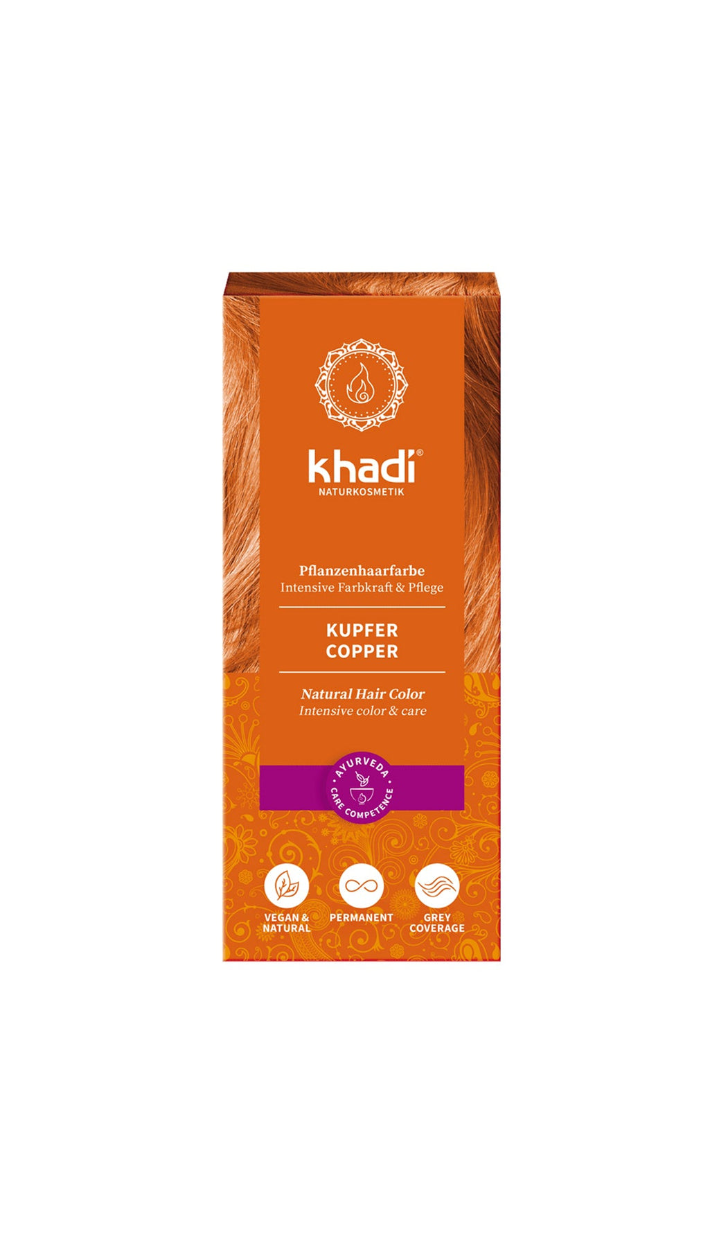Khadi Plant Haarkleur Koper verft uw haar in helder goud koper – de brug tussen blond en rood. Deze 100% natuurlijke haarkleur geeft intense, heldere kleurreflexen en zorgt voor rijke verzorging. Het resultaat varieert van stralend kopergoud tot vurig koperrood, afhankelijk van uw originele haarkleur. De puur plantaardige pigmenten wikkelen zich als een kleurvacht om elk haar en versterken en voeden tijdens het kleuren.