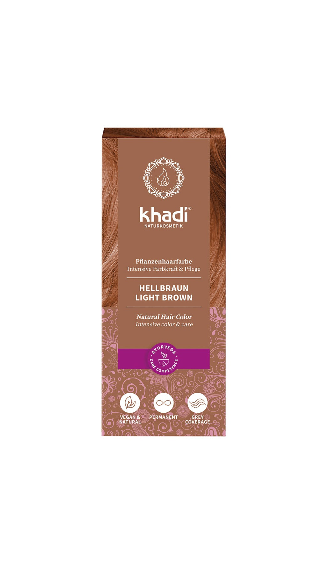 Khadi Lichtbruin verft uw haar in een warme, lichtbruine tint met een vleugje brons. Deze 100% natuurlijke, plantaardige en veganistische haarkleur is vrij van azokleurstoffen, ammoniak en peroxiden. Het resultaat varieert van een lichte, warme glanzende bruine tint tot een rijk lichtbruin met roodachtige reflexen, afhankelijk van uw startkleur en grijsgehalte. De kleur bedekt ook grijs of wit haar zonder problemen en is geschikt voor pre-pigmentatie bij donkere nuances.