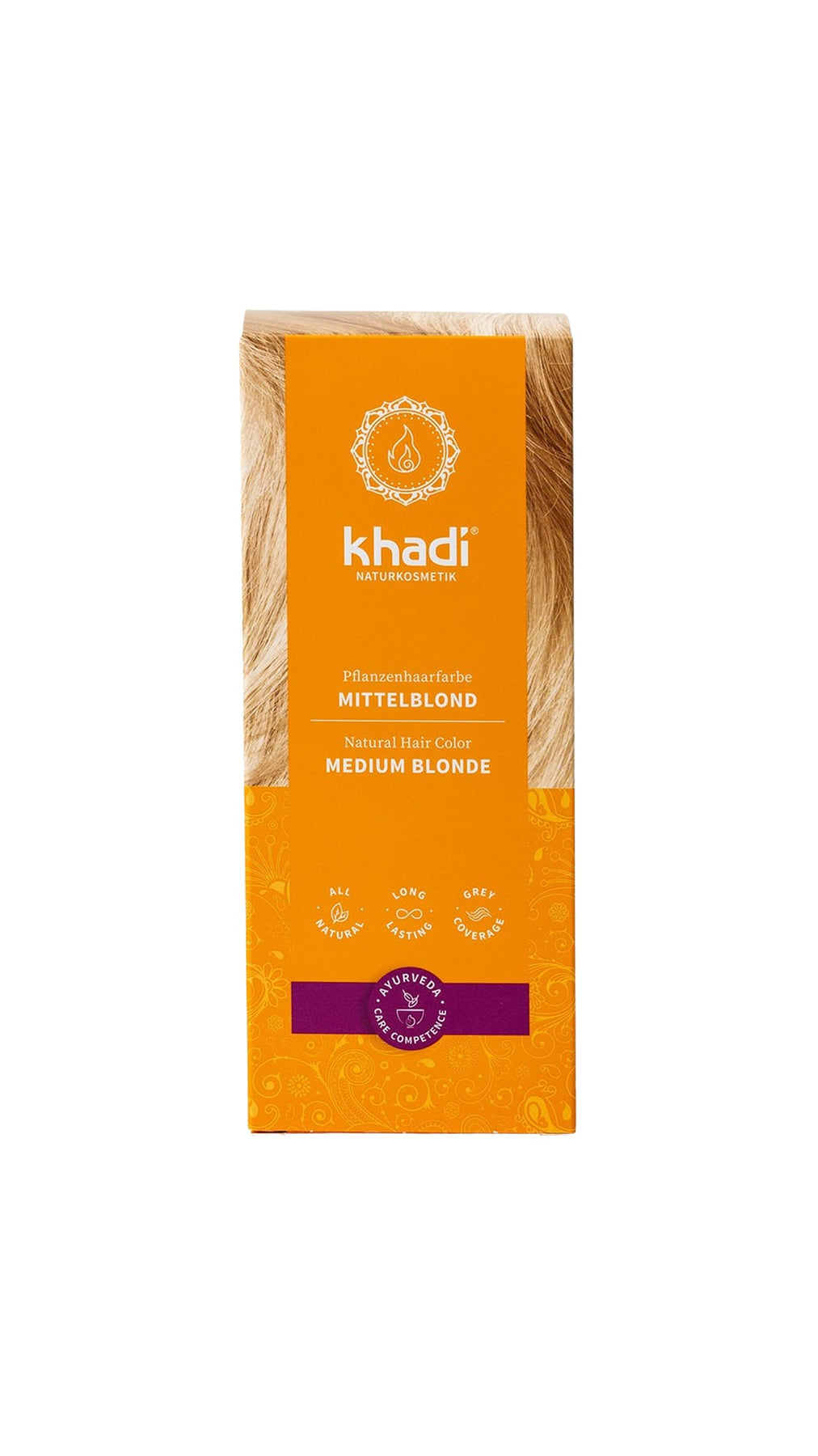 Khadi Plant Haarkleur Medium Blond geeft uw haar delicate goud- en karamelreflexen met de kracht van de natuur. Deze 100% natuurlijke en veganistische haarkleur is vrij van synthetische ingrediënten. Het resultaat varieert per startkleur: licht haar krijgt een koele tot warme goudkleurige blondine, donker haar krijgt gouden tot roodgouden reflexen met prachtige glans. De kleur bedekt ook grijs haar op een voedende manier.