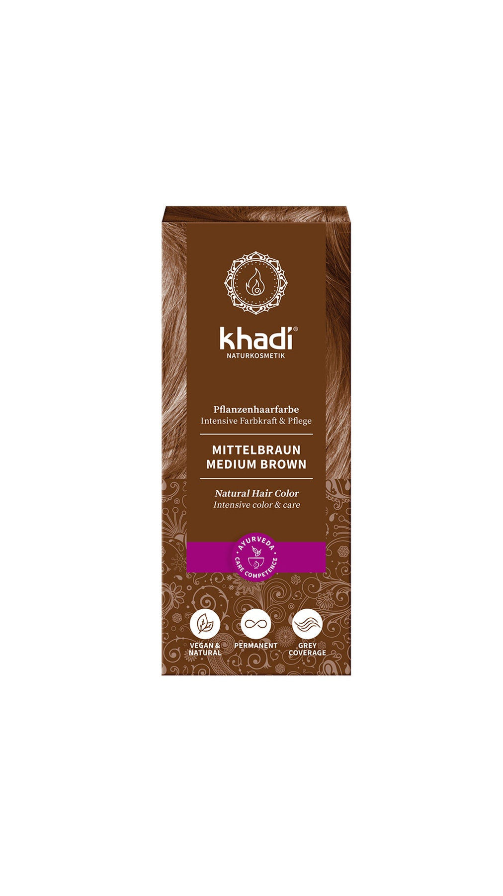 Khadi Medium Brown kleurt uw haar in een warme, kaneelkleurige medium bruin – natuurlijk en glanzend. Deze zuivere plantaardige haarkleur geeft intensieve kleurreflexen en zorgt voor rijke verzorging. Het resultaat varieert van een levendig, warm kaneelbruin tot een sterk, diep middenbruin, afhankelijk van uw natuurlijke haarkleur. De waardevolle plantaardige ingrediënten brengen natuurlijke stralende kleur, volume en glans in één stap.