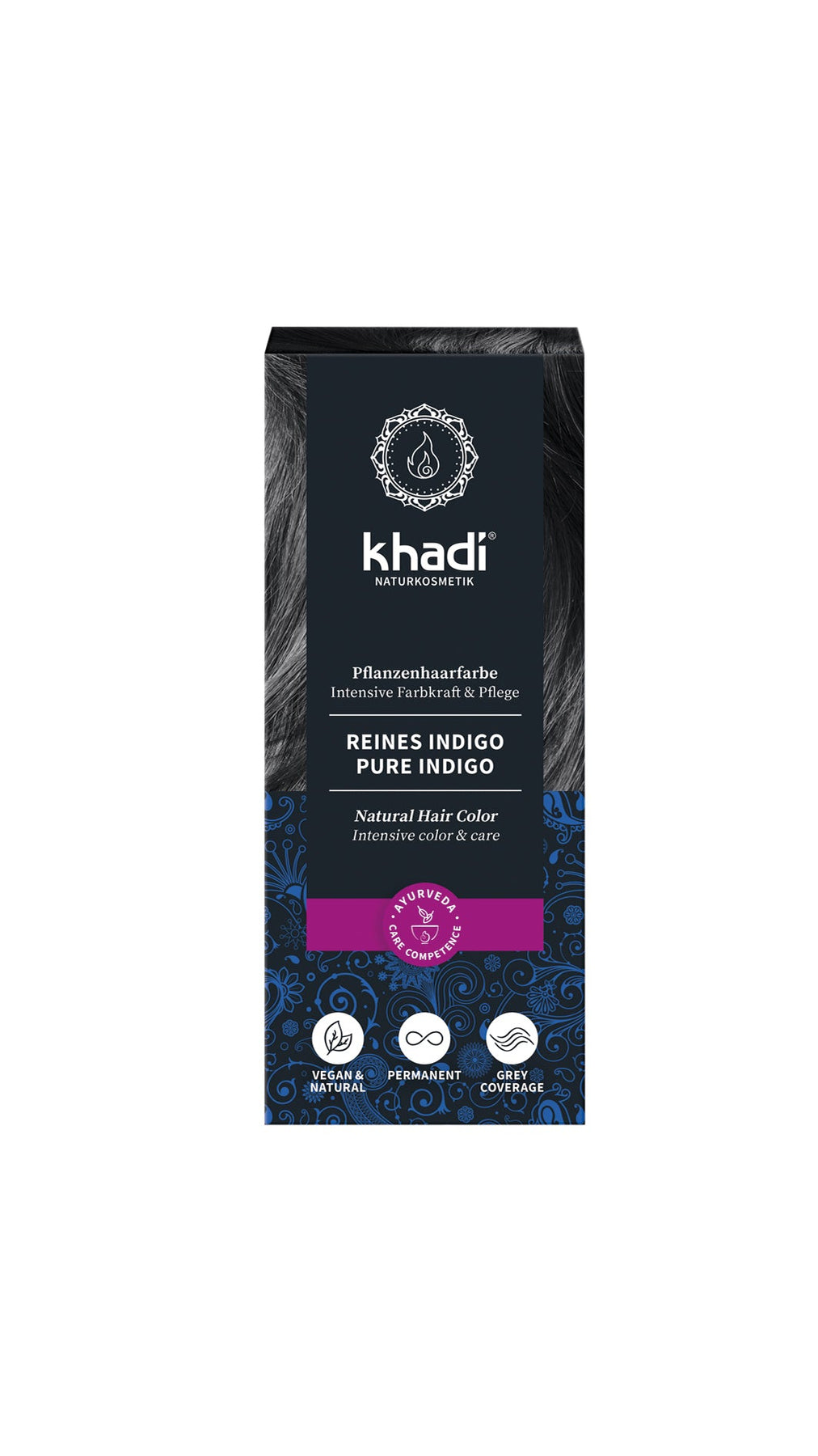 Khadi Indigo kleurt uw haar in een donkere, diepzwarte kleur met een glinsterende blauwtint – voel de kracht van pure indigo. Deze puur plantaardige en veganistische haarkleur bestaat uit 100% zuivere indigo en zorgt voor een diepzwart dat alle originele kleuren dekt. Voor middelblond of lichter haar en voor grijs en wit haar is voorbehandeling met Khadi Pure Henna nodig. Ook geschikt voor het mengen van roodachtige tinten voor een ashy toon, of als spoelmiddel om roodachtige tinten te verminderen.