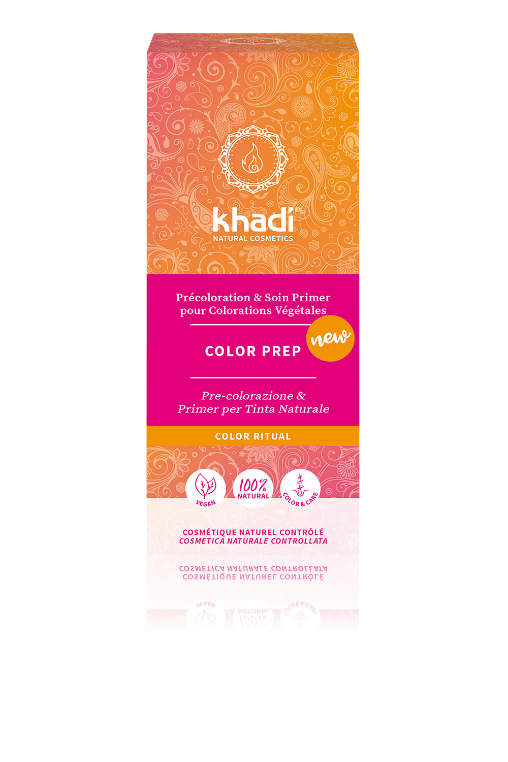 Khadi Color Prep is een Ayurvedisch plantenpoedermengsel voor pre-pigmentatie en completeert het 3-stappenritueel van Khadi. Het kan gezien worden als de schakel tussen voorbehandeling en kleuring en ondersteunt een intens kleurresultaat. Het product wordt aanbevolen als een perfecte basis, vooral bij het verven van zeer licht of wit haar met donkere nuances. Ook zeer geschikt voor het verven van wortels.