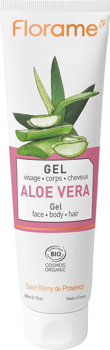 Florame Biologische Aloë Vera Gel 150 ml is een gezichts-, lichaams- en haarverzorgingsproduct. Aloë vera gel staat bekend om zijn hydraterende en verzachtende eigenschappen.Deze gel is gemaakt van vers inheems sap en is bijzonder rijk aan voedingsstoffen. De lichte, smeltende textuur laat een beschermend laagje achter op het huidoppervlak. Dermatologisch getest. 100% van alle ingrediënten zijn van natuurlijke oorsprong.95% van alle ingrediënten zijn afkomstig van biologische landbouw.Cosmos Organic gecertificeerd door Ecocert Greenlife volgens de Cosmos standaard. Gemaakt in Frankrijk.